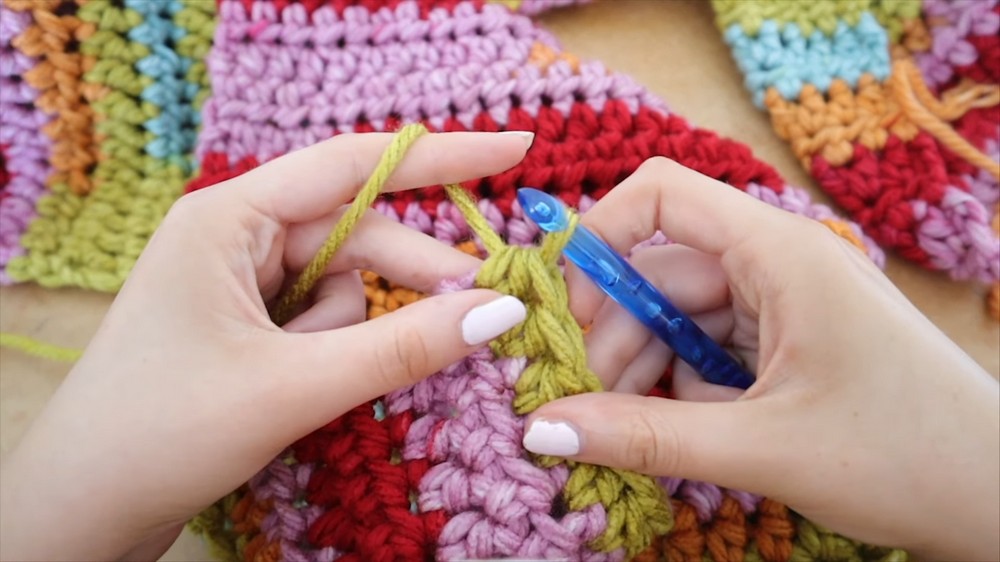 - Pull up a loop (3 loops on your hook), yarn over again, pull through all 3 loops to complete the half double crochet.