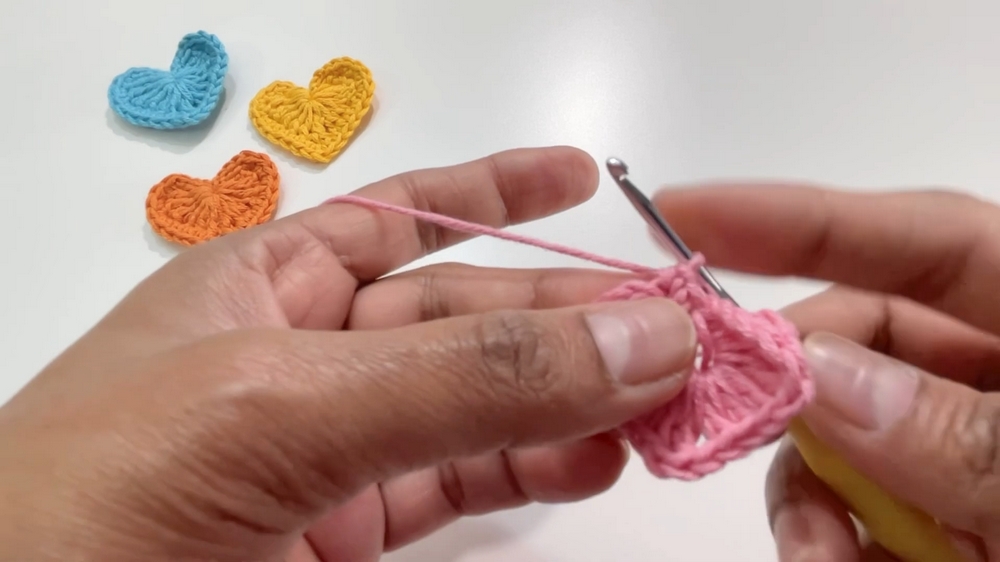 - Mirror the single crochet additions to finish both sides of the heart evenly.