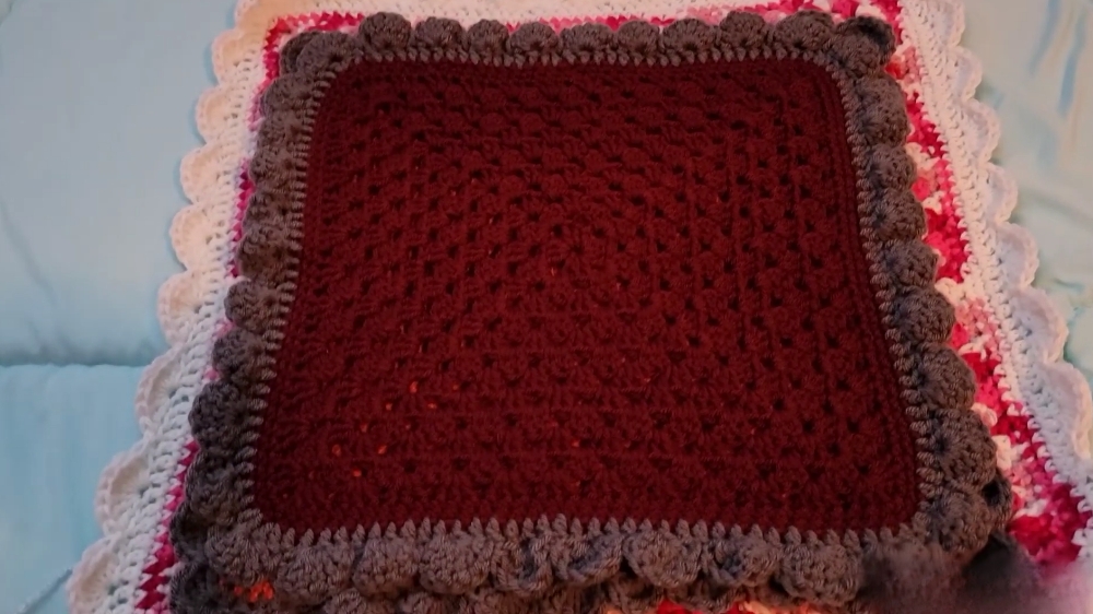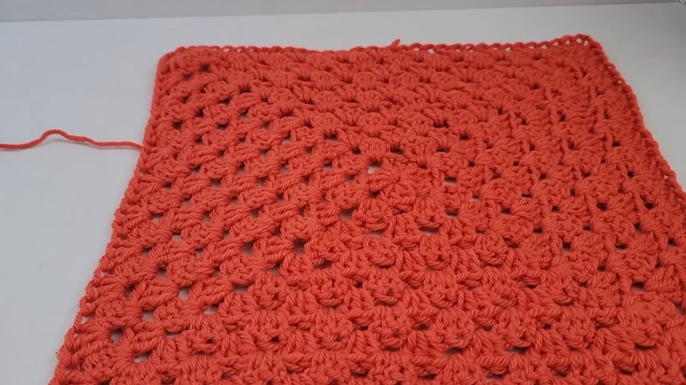 - Once all granny square rows are complete, add an edge using single crochet stitches.