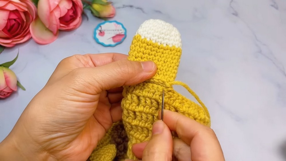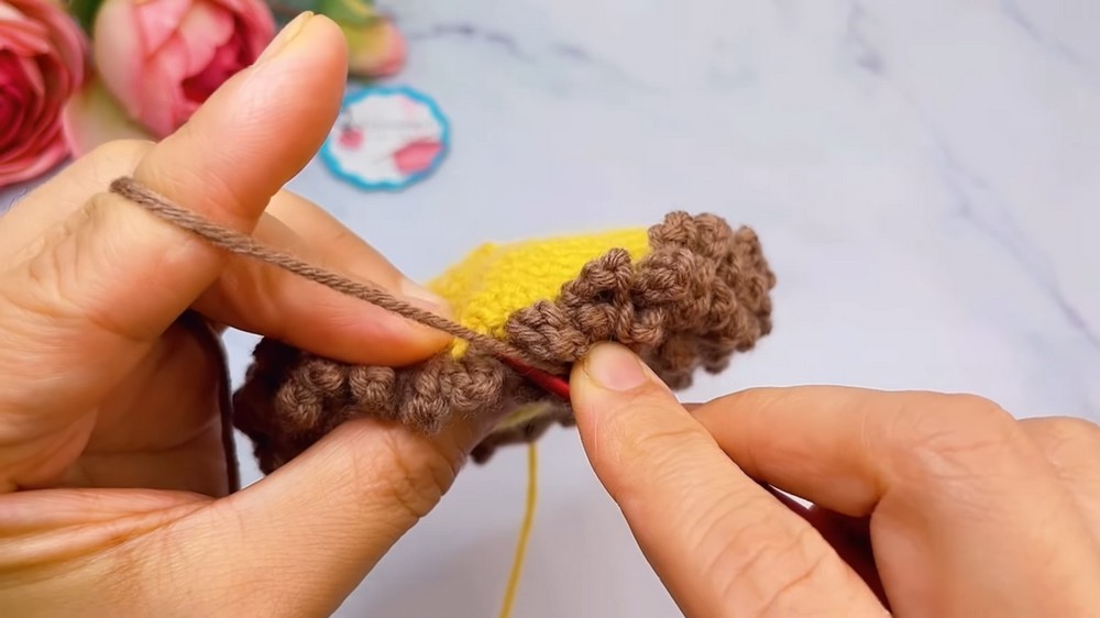 - Attach brown yarn to the front loop of Round 10.