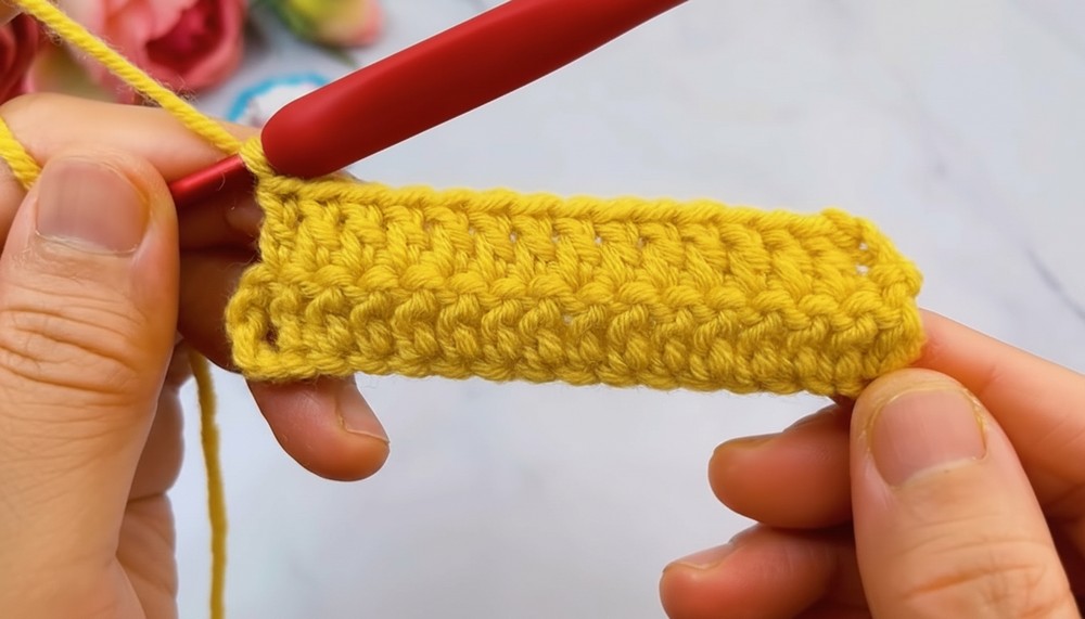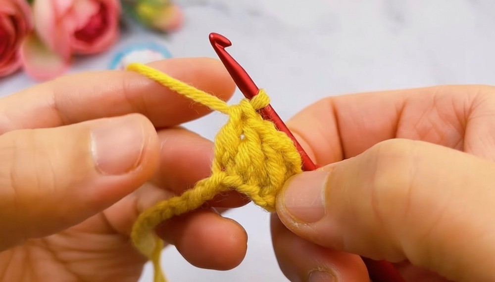 - Crochet 1 SC in the first stitch, then SC in the next 3 stitches.