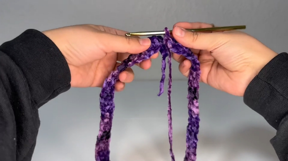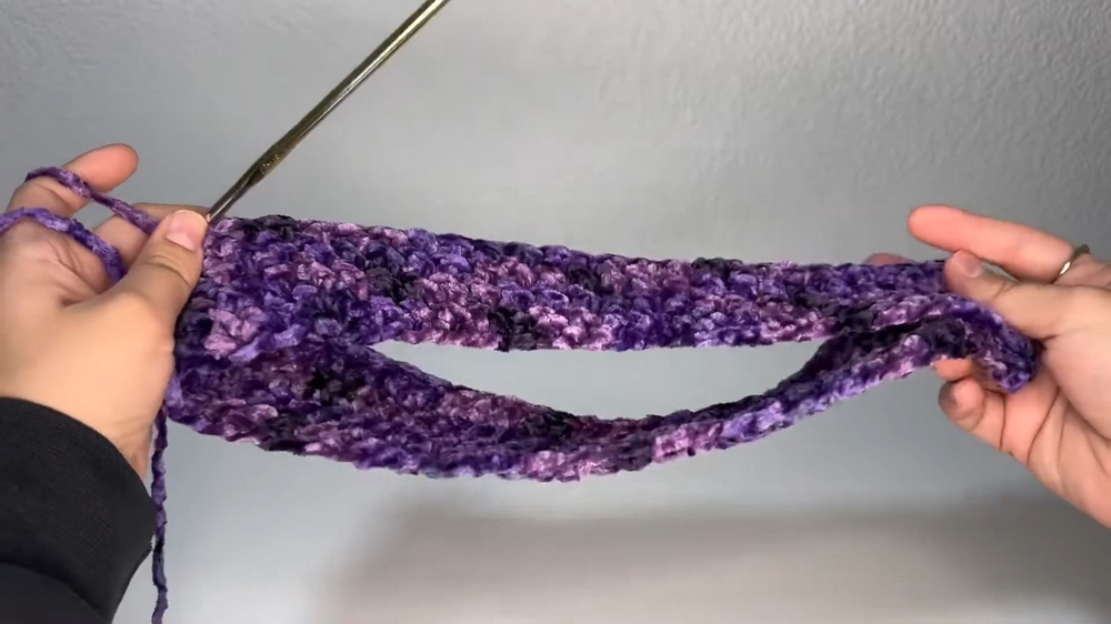 - Yarn over, insert your hook into the first stitch, and into the corresponding stitch on the opposite side. Join with a slip stitch.