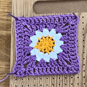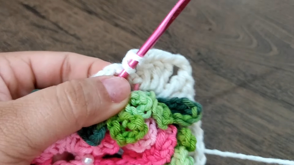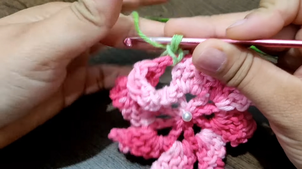 - Attach the yarn to the underside of the flower center.
