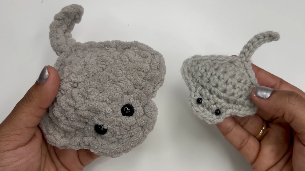 - Experiment With Yarn: Super bulky yarn creates plushies, while worsted weight yarn results in smaller, portable stingrays perfect for keychains.