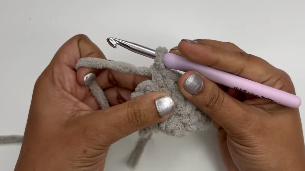- In this row, simply work 1 single crochet in each of the 10 stitches, without any increases.