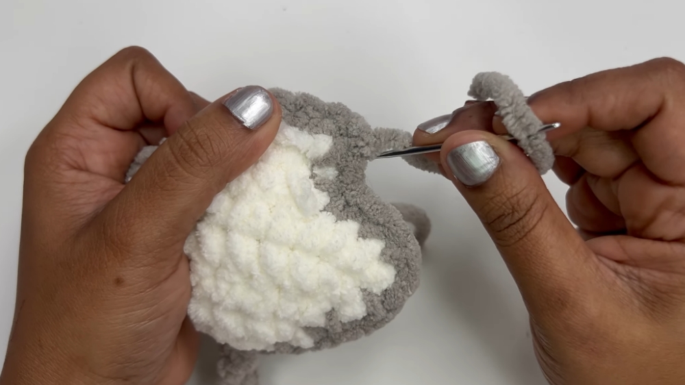 - Before completing the joining, stuff the stingray lightly with polyester fiberfill, focusing more on the head portion to shape it properly.