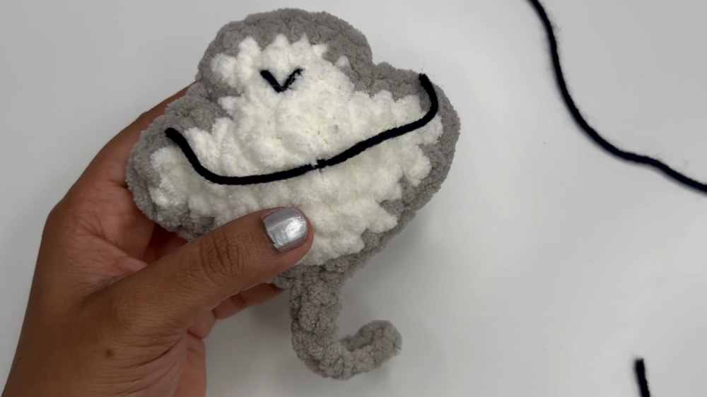 - Flip to the underside of the stingray and use black yarn to embroider a cute little smile.