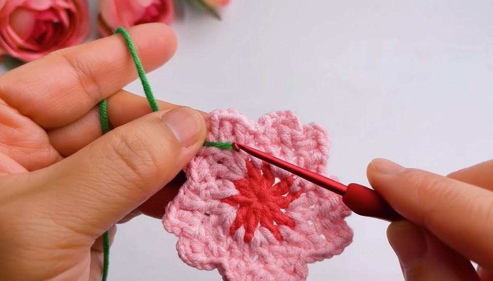 - Attach Color C to first dc of any petal.