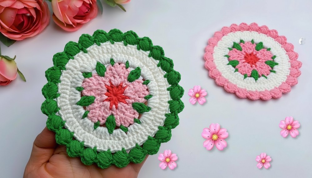 Free Crochet Cherry Blossom Coaster Pattern for Beginners