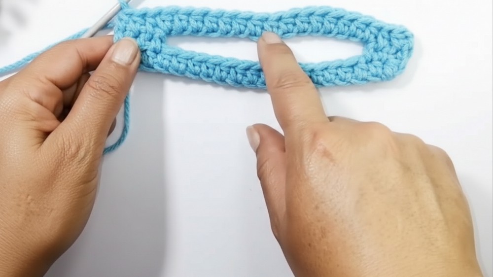 - Half-double crochet (hdc) into the second chain from the hook and into each chain across (total: 19 hdc).