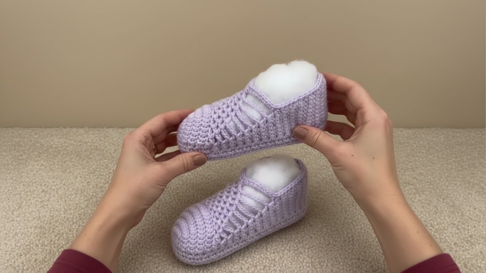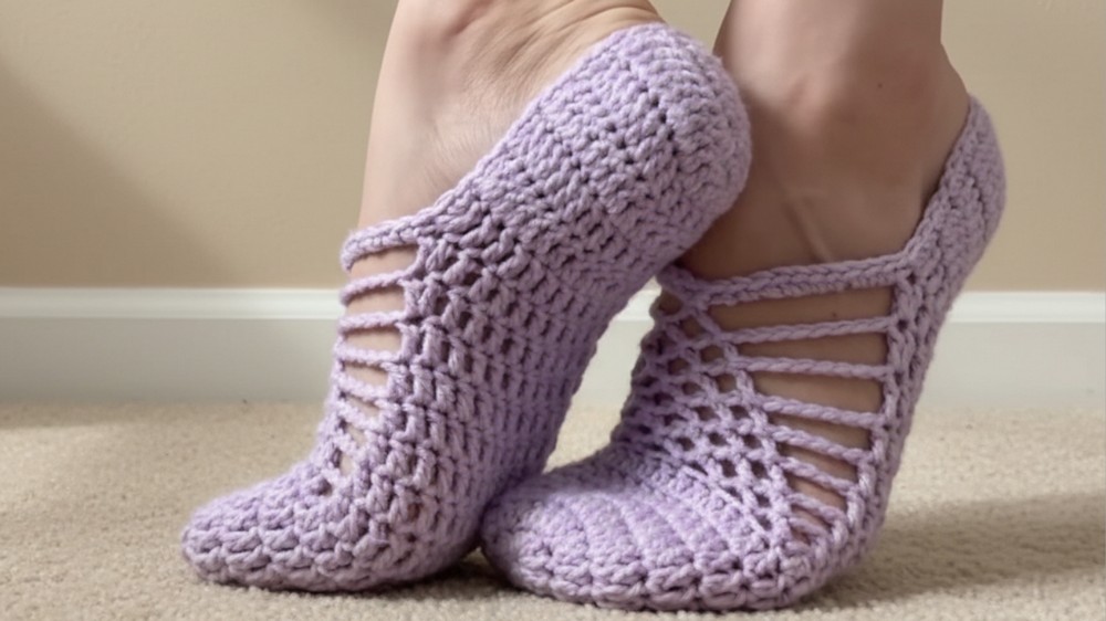 Project Complete: Your crochet ballet slippers should be taking form with the adjustable rows and snug fit curves.