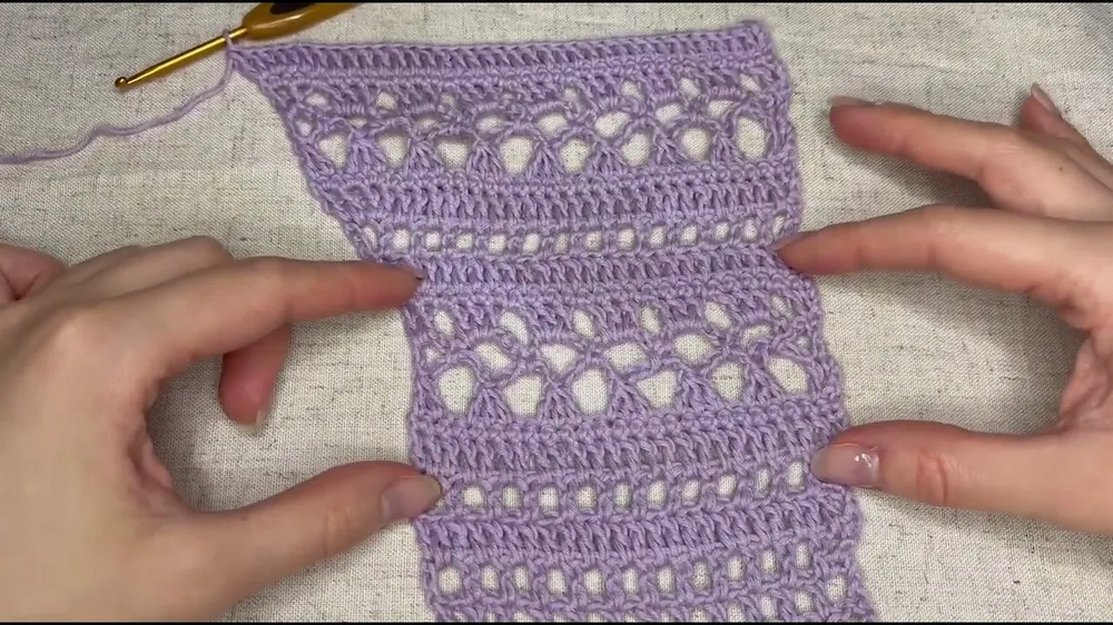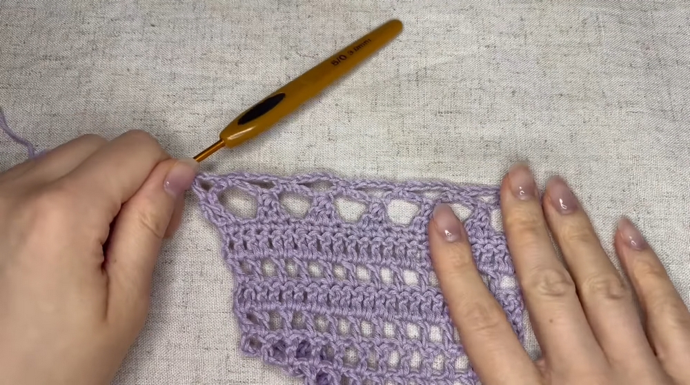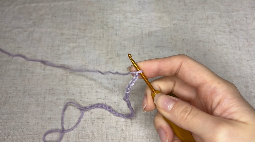 - Chain 1, skip the next stitch, and continue with this pattern.