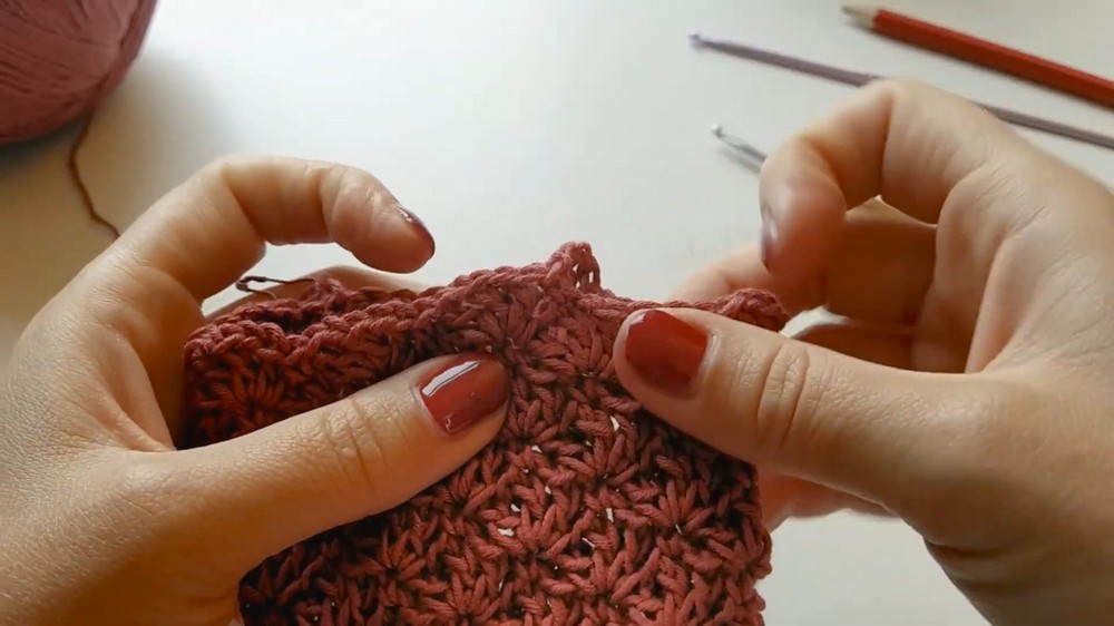 - Work hdc in the third loop of each hdc from the previous row.