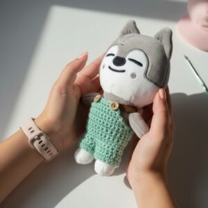 The Yoda Amigurumi has worked with Baby Green, Snow White, and SOFT Beige yarn and (G) sized hook, which is very soft; you can easily make it in a few hours. This kind of showpiece is excellent for enhancing home decor. Besides that, because it is soft and beautifully crocheted, your children can play with it. The buttons have been attached to the eyes of Baby Yoda, which has further enhanced her beauty. If you want to make your free time valuable, you can make it more for your children in different colors.