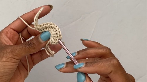 - Slip stitch into the second chain of the initial chain 2 to close the round.