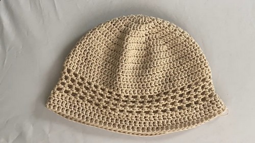- Repeat the mesh pattern for three more rounds (double crochet above previous double crochet, chain 1 above previous chain 1 space).