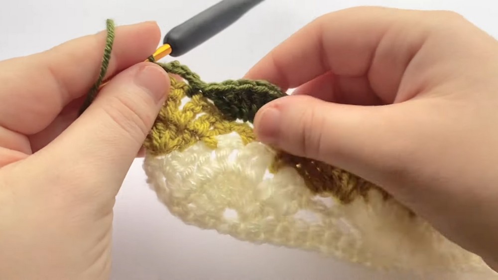 - Attach new color if desired and repeat from Row 1 (account for different starting stitches on row 3).