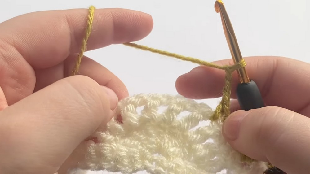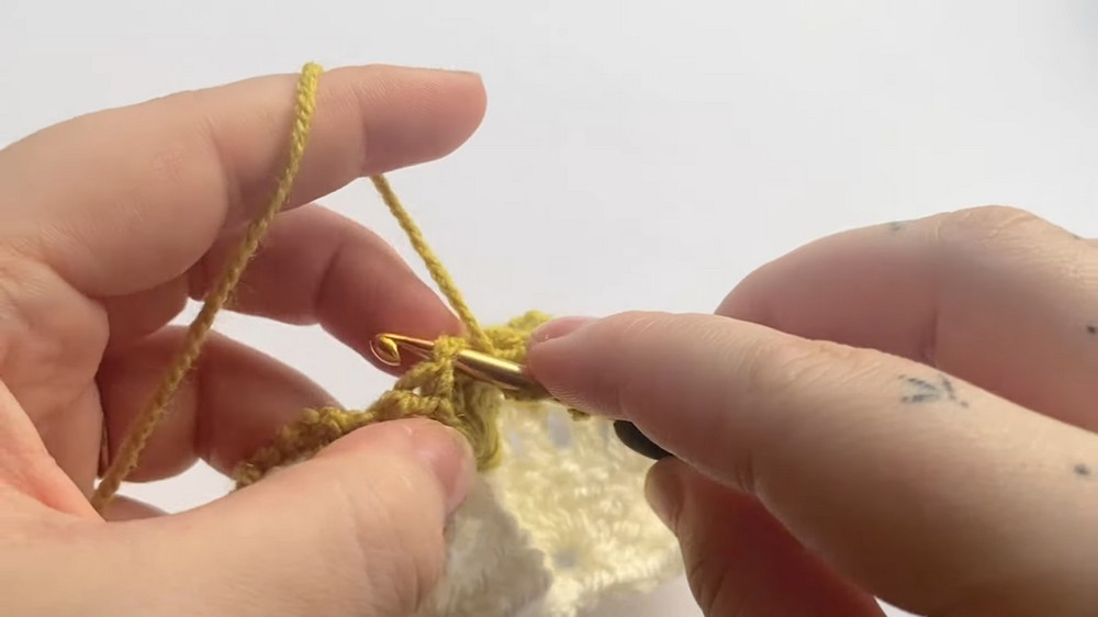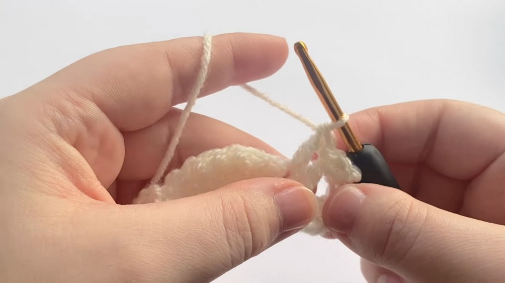 - Repeat: Chain 3, skip 2 stitches, 1 sc, chain 3, skip 2 stitches, 1 sc.