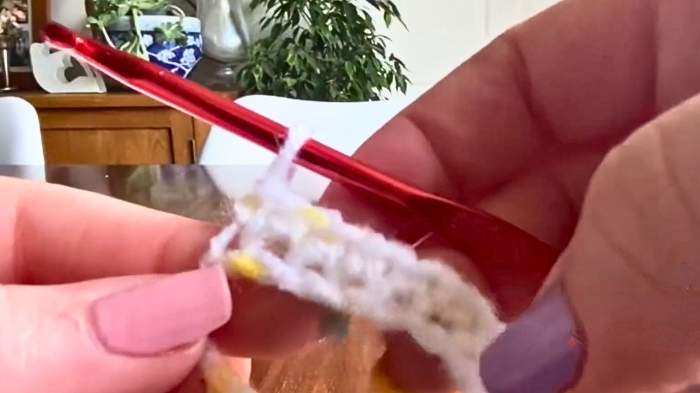 - Chain one, turn, and repeat this increase row for four total rows of increases, shaping the chicken’s body.