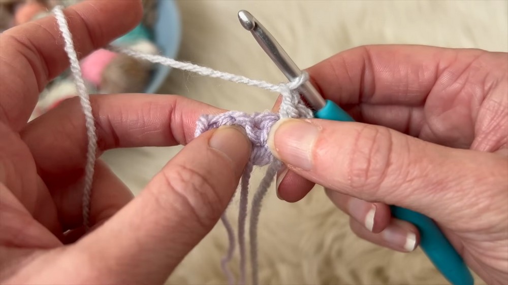 - Work another double crochet in the space created by the chain from the beginning.