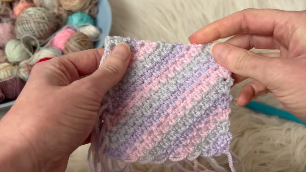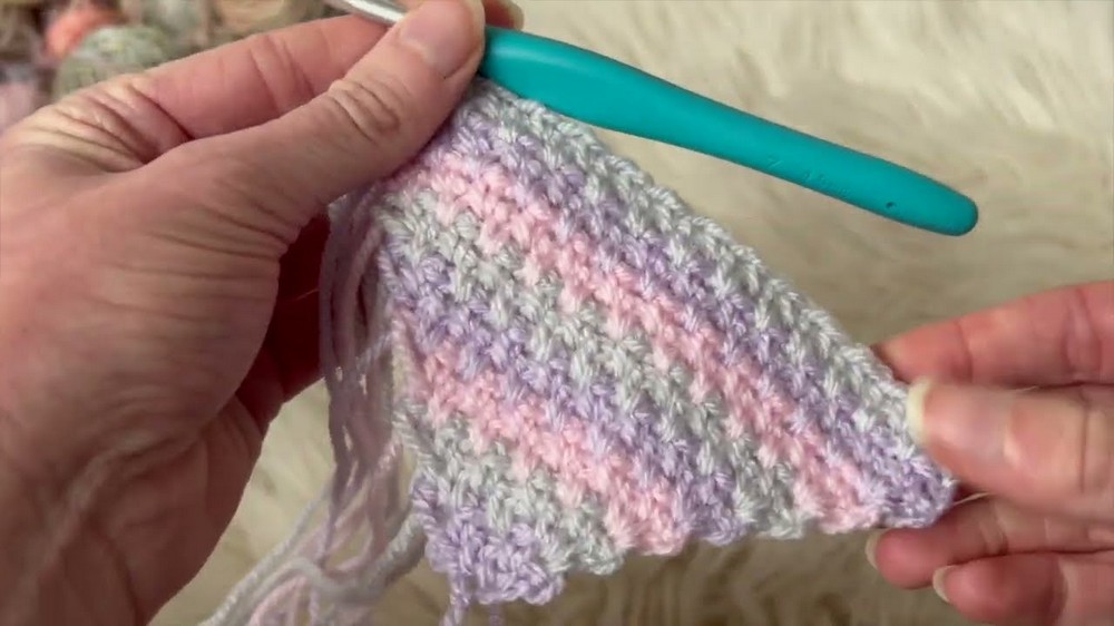 - (Optional) Change colors every two rows or whenever you run out of yarn in your current color.