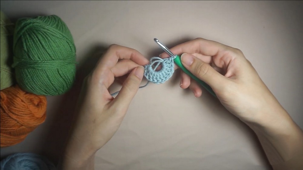 - Sl st into the starting ch 2, fasten off, and cut the yarn.