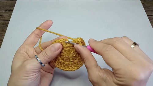 - Crochet 2 double crochets into each stitch around (24 stitches total).