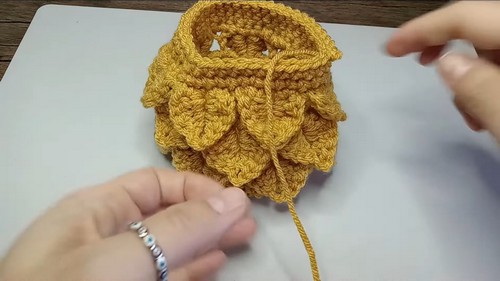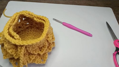 - After reaching the desired height, finish with 3 rounds of single crochet.