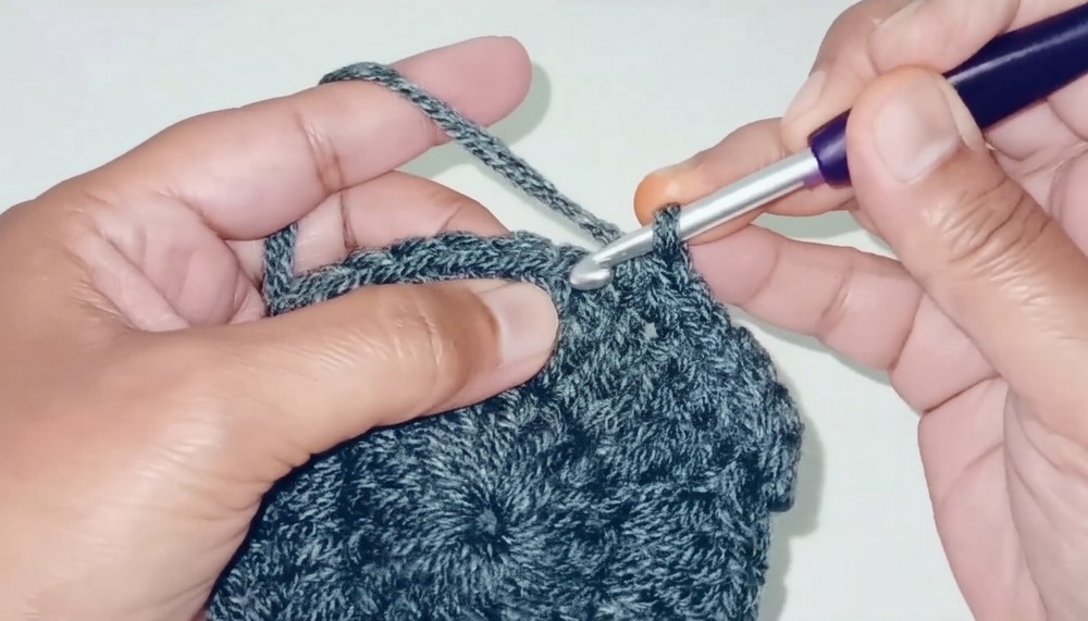 - In the same stitch, make 2 additional double crochets to form the first corner (3 double crochets in one stitch).