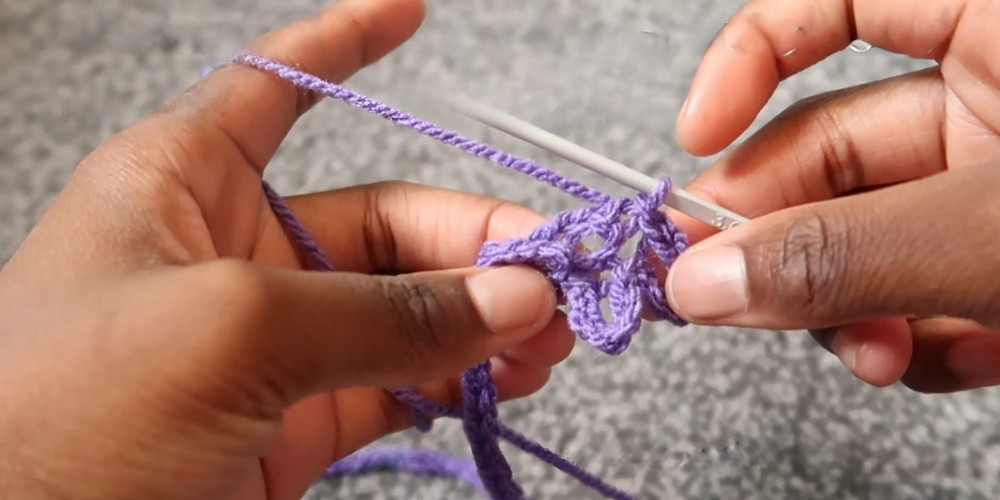 - Repeat: Move to the next chain, slip stitch, chain 6, insert back into the same stitch, pull yarn through, make a slip stitch.
