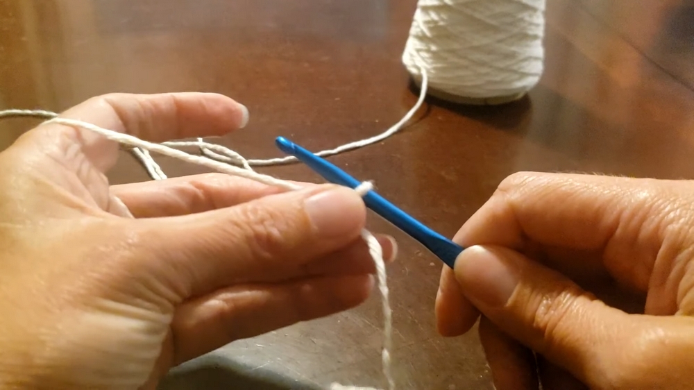 - Make Chains: Create a chain approximately twice the length of the bag and add a few extra inches for comfort (~230 chains).