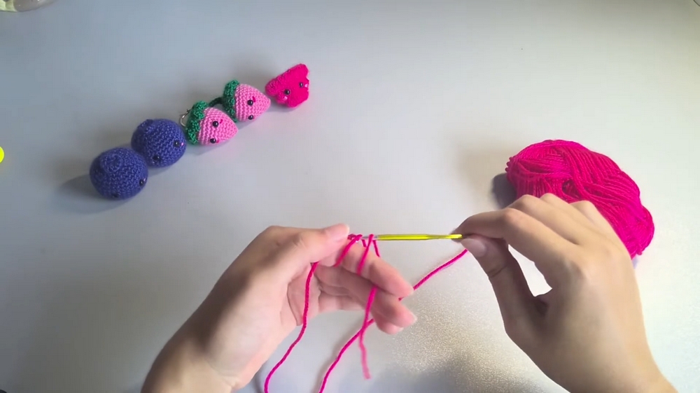 The process begins with the creation of a magic ring, a foundational step in many crochet projects. Through this ring, six single crochets form the base of your raspberry, tightly pulling the ring to achieve a neat and sturdy beginning.