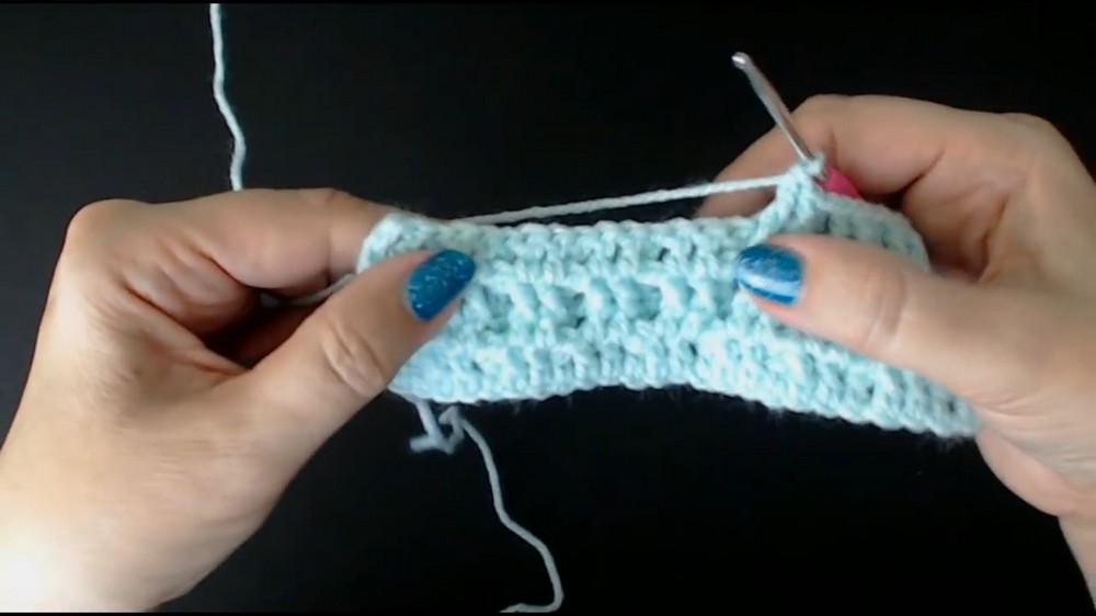 - At the end of the row, finish with 1 tr into each of the last 2 stitches (or into the turning chain of the previous row).