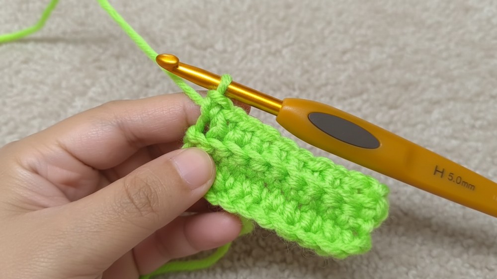 - Chain 11 stitches to create the starting foundation for the ribbing.