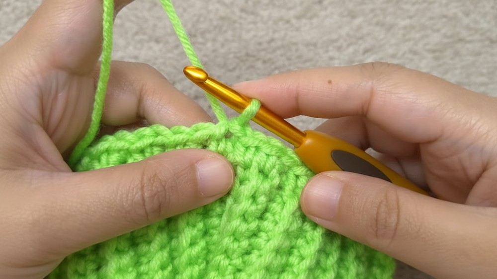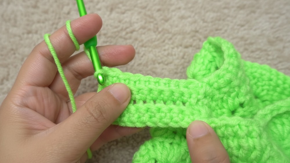 - Follow the same steps as bottom ribbing (single crochet in back loops).