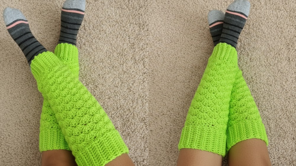 Fashionable Crochet Shell Leg Warmers for Cozy Wearing