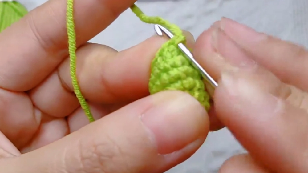 - Work 1 SC, 1 Inc; repeat 3 times.