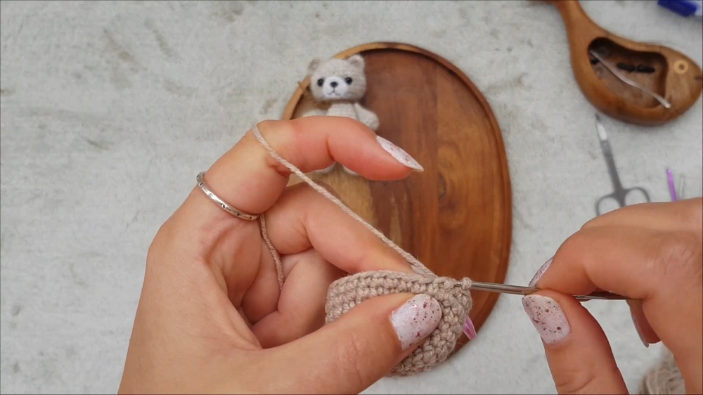 - Row 2: Crochet 3 stitches into the first stitch, single crochet into the next two, and repeat—this forms the oval.
