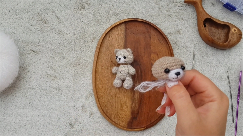 - Eyes: Insert plastic eyes at a distance you find cute and fasten them from the back.
