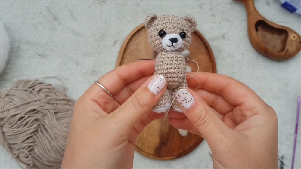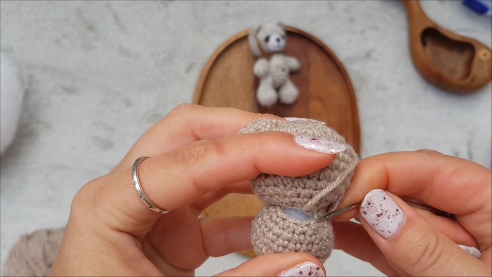 - Head and Body: Sew the body to the head using the long tail left from the body. Align the stitches carefully.