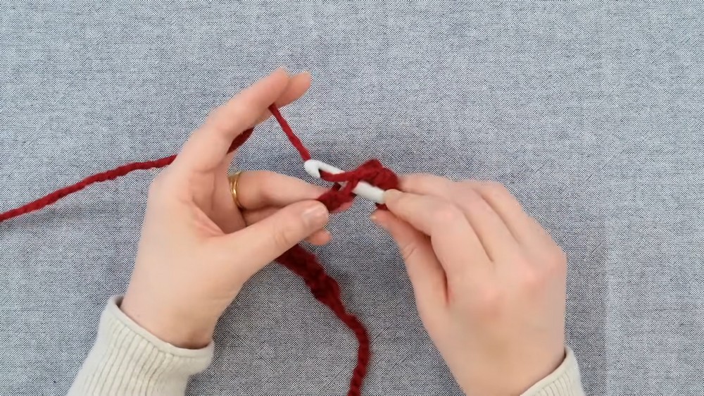 - To create a chain, yo (yarn over) and pull the yarn through the loop on the hook.