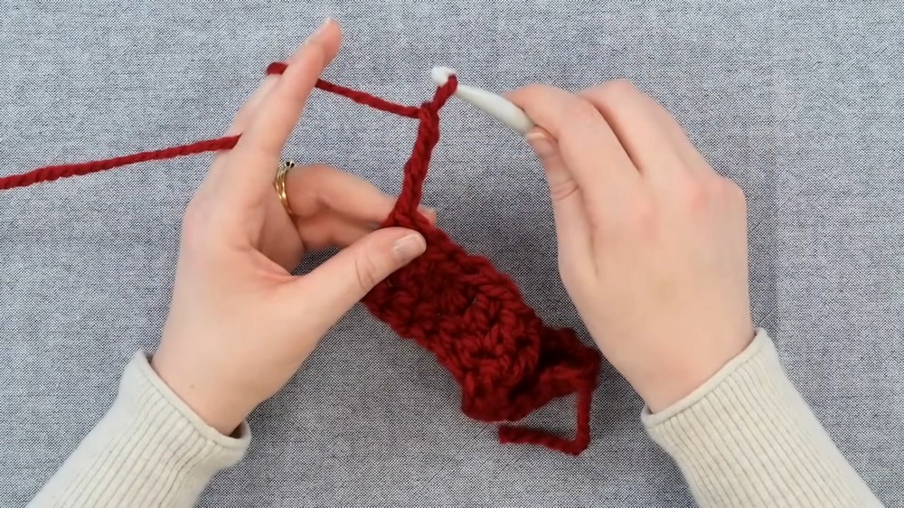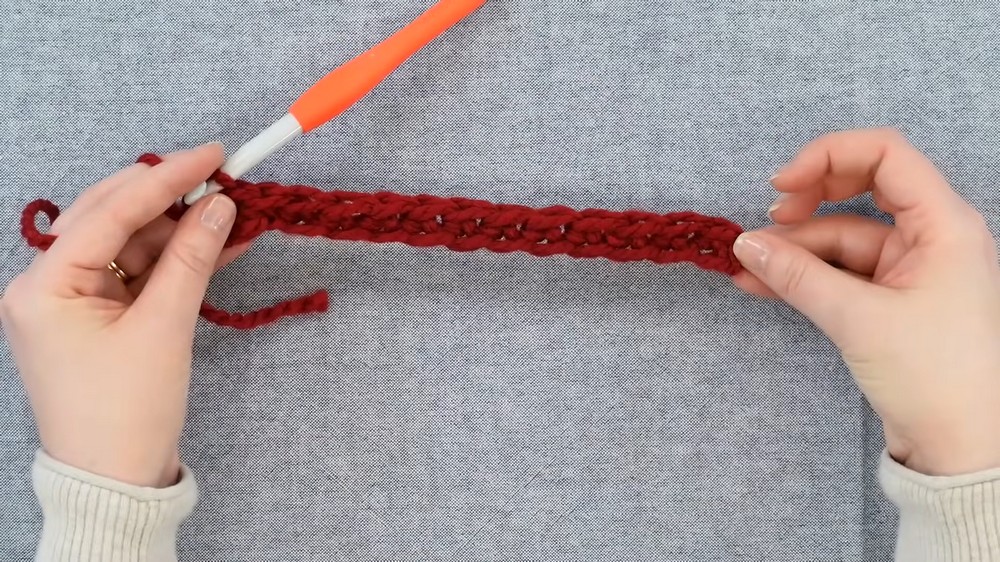 - Repeat this process across the row, working one sc in each chain.