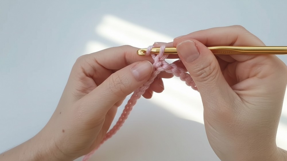 - Yarn over (yo) and insert your hook into the fourth chain from the hook.