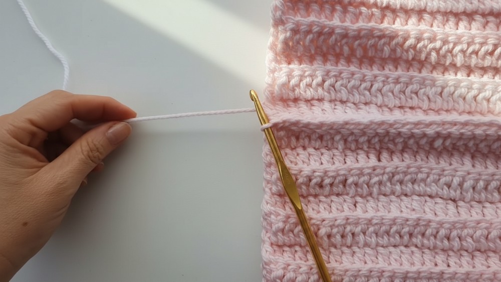 - Continue working rows of double crochet (BLO) until you reach the desired number of rows: