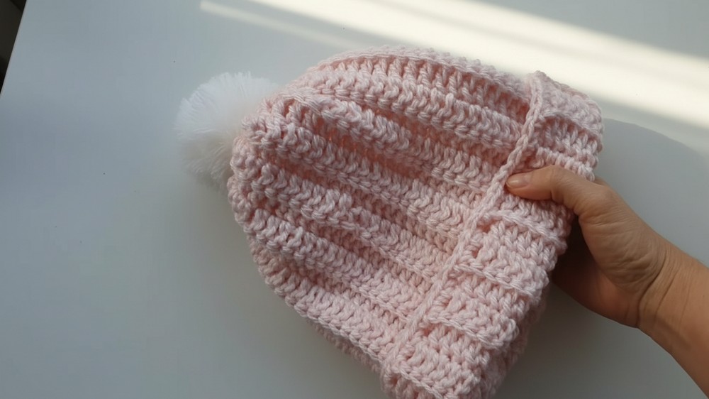 Your handmade ribbed winter hat is complete! This hat is warm, stretchy, and stylish, making it ideal for gifting, personal wear, or selling. It can be decorated with a pom-pom or left plain for a versatile design. The simple yet attractive ribbed texture highlights the beauty of your crochet work.