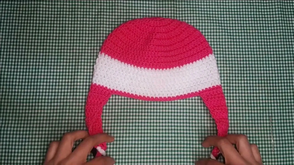- Braided Strips: Use yarn strips and a crochet hook to thread them into earmuff ends, tying them securely and braiding them into three-strand braids.