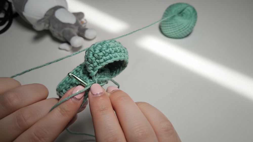 - Instead of joining rows at the back seam, work back-and-forth sc rows for 3-4 rows to form a small gap.