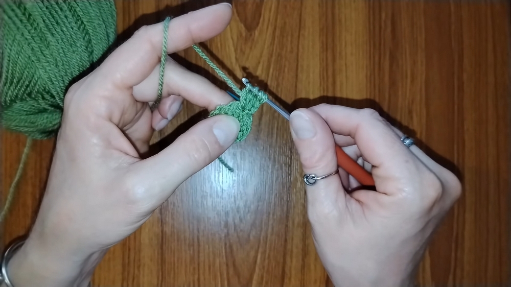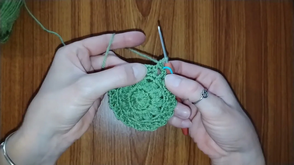 - Pull on the tail tightly to close the ring and complete the round with a slip stitch into the first double crochet.