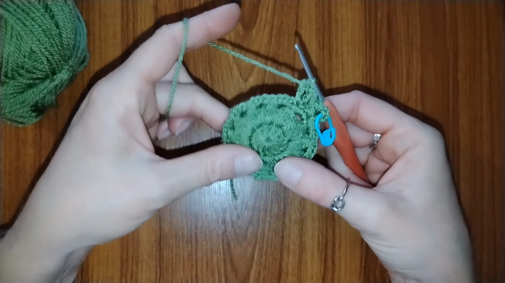 - Make a slip stitch onto the ring and then work seven single crochets along the metal ring.