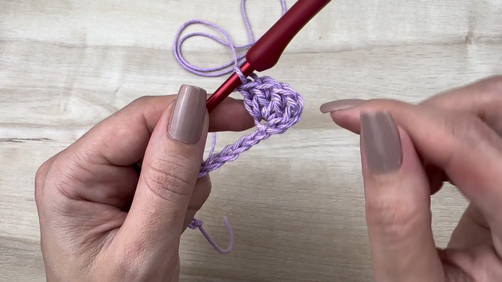 - Skip 3 ch (counts as first dc), dc in 4th ch from hook.